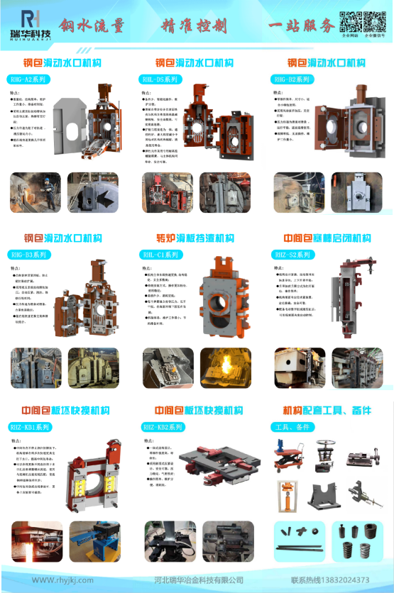轉爐出鋼口擋渣系統 鋼包滑動水口機構 鋼包吹氬鎖緊機構 中間包快換機構 中間包塞棒機構 電爐擋渣機構 液壓設備 輔助工具